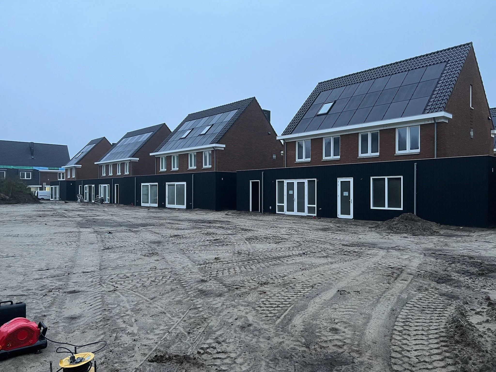 uitstrookwerk achtergevels + bergingen en daarna bekleed met Dumo Woods van InterFaca